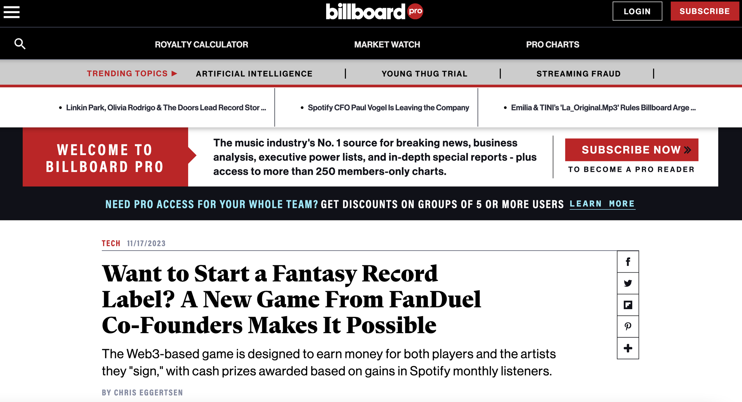 Want to Start a Fantasy Record Label? A New Game From FanDuel Co-Founders Makes It Possible