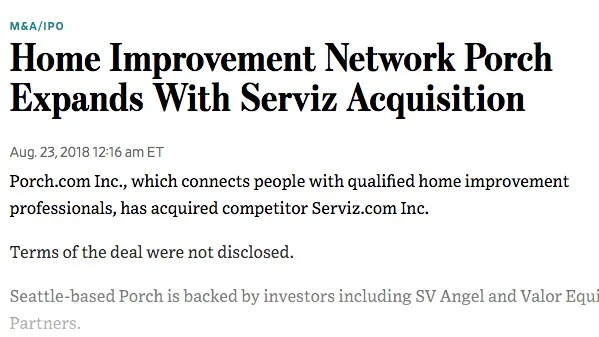 Home Improvement Network Porch Expands With Serviz Acquisition