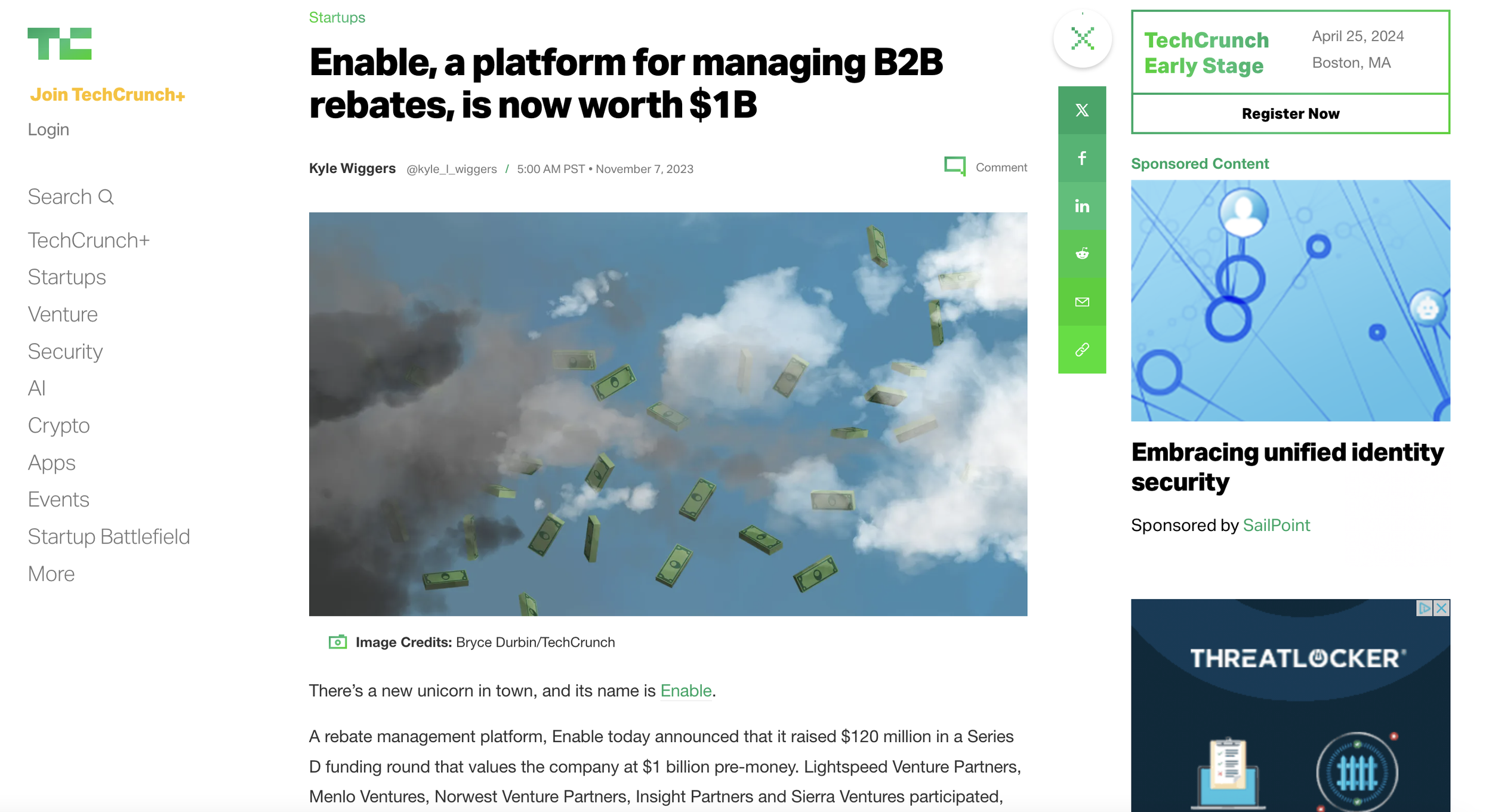 Enable, a platform for managing B2B rebates, is now worth $1B