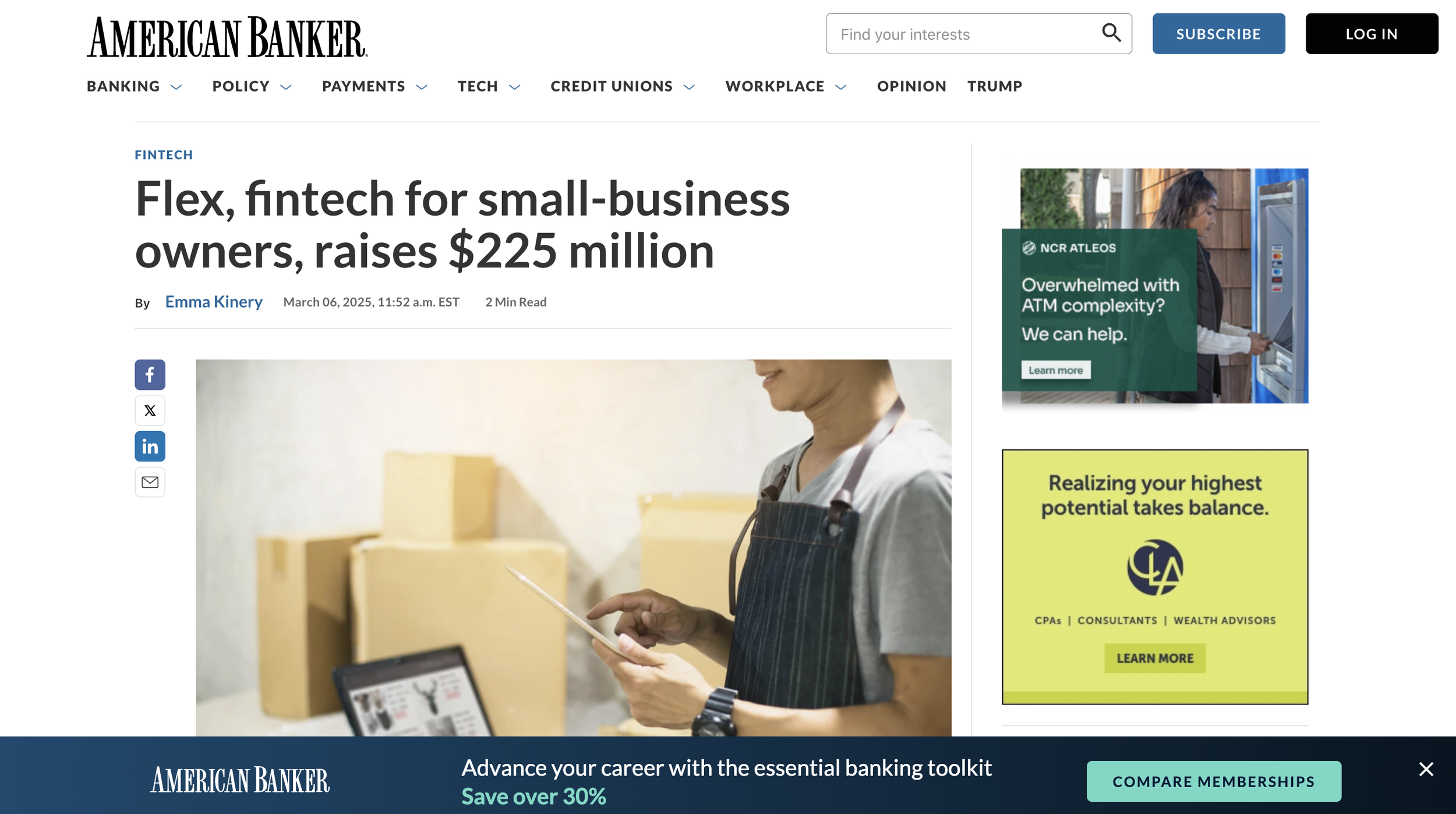 Flex, a Brex for business owners, has raised $25M at a $250M valuation